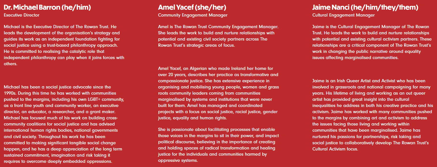 The Rowan Trust's former Executive Director Michael Barron, a co-founder of BeLonG To, another transactivist lobby group, is now listing Michael Barron Social Change Consultancy on his LinkedIn profile