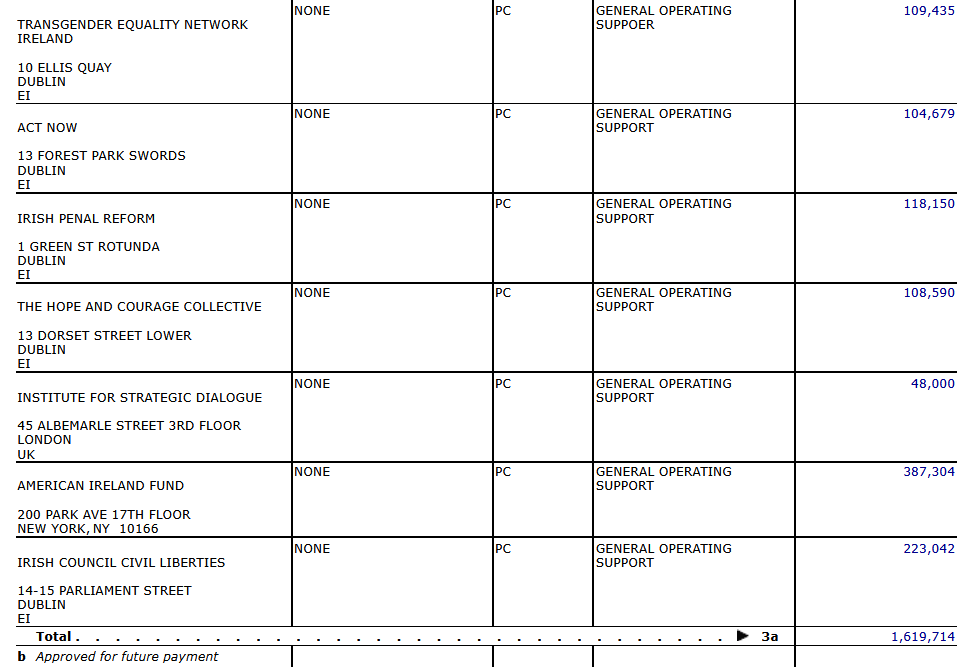 The Rowan Foundation is one philanthropic body from abroad providing funding to NGOs in this country such as TENI, the Transgender Equality Network Ireland, and to the ICCL which said last month it had published "Ireland’s first ever 'Know Your Rights' guide for trans and non-binary people" for which it's been much criticised for example by Sandra Adams for Genspect.