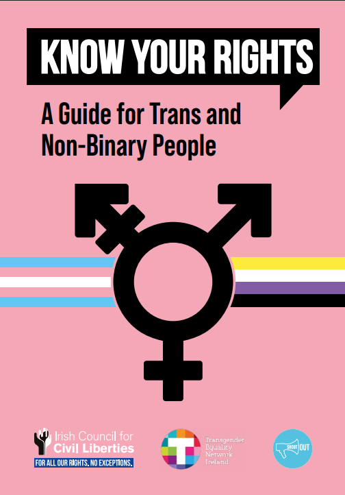 Earlier this month the ICCL, which uses as its tagline "For All Our Rights, No Exceptions", published Know Your Rights, A Guide for Trans and Non-Binary People along with TENI, the Transgender Equality Network Ireland and ShoutOut: