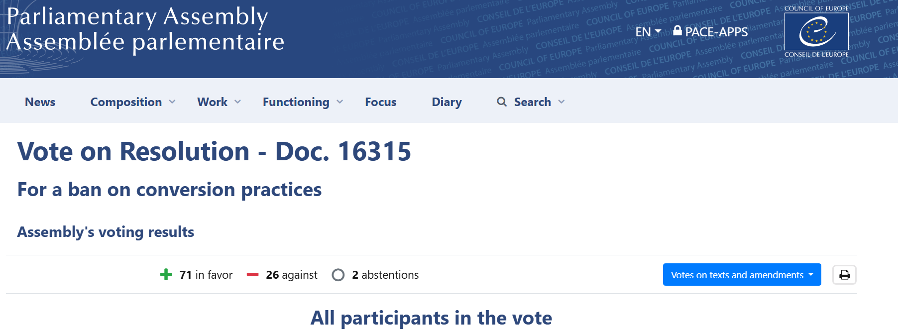 Yesterday saw the vote at the Parliamentary Assembly of the Council of Europe (PACE) on the resolution tabled by British Labour's Kate Osborne MP seeking a ban on so-called "conversion practices" which force teamed the reality of sexual orientation with the unevidenced idea of "gender identity". The Council of Europe summarised it by saying