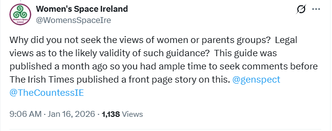 Pat Leahy tweeted about his story but didn't respond when asked why no comments had been sought from women's groups in the intervening period between the guide's publication and his story being published in The Irish Times: