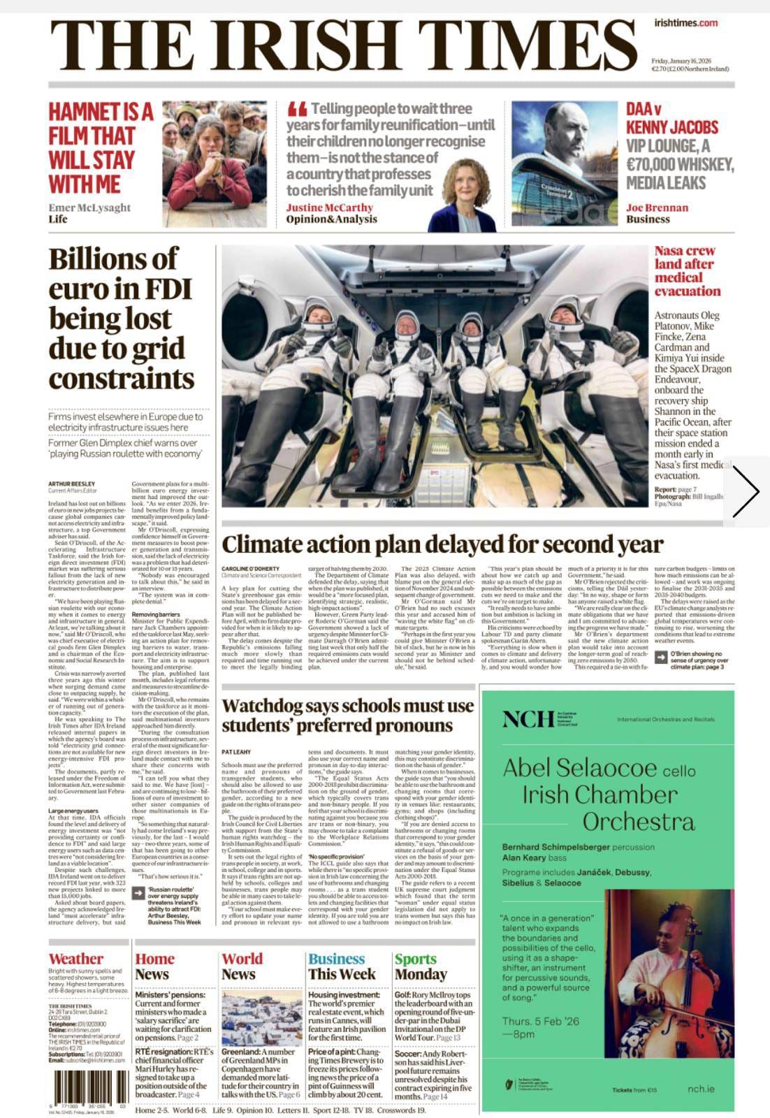 RTE covered the launch on 11th December but it wasn't until January 16th that The Irish Times got around to publishing its report on the guide and then gave it front page placement no less: